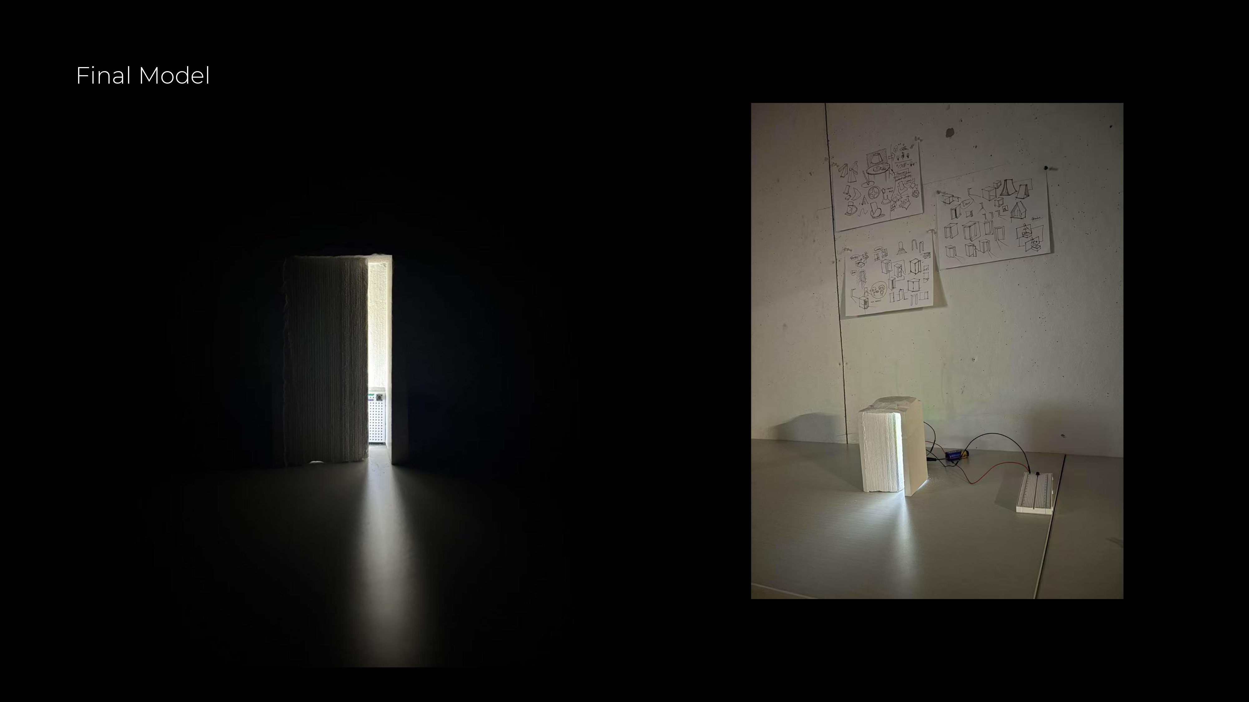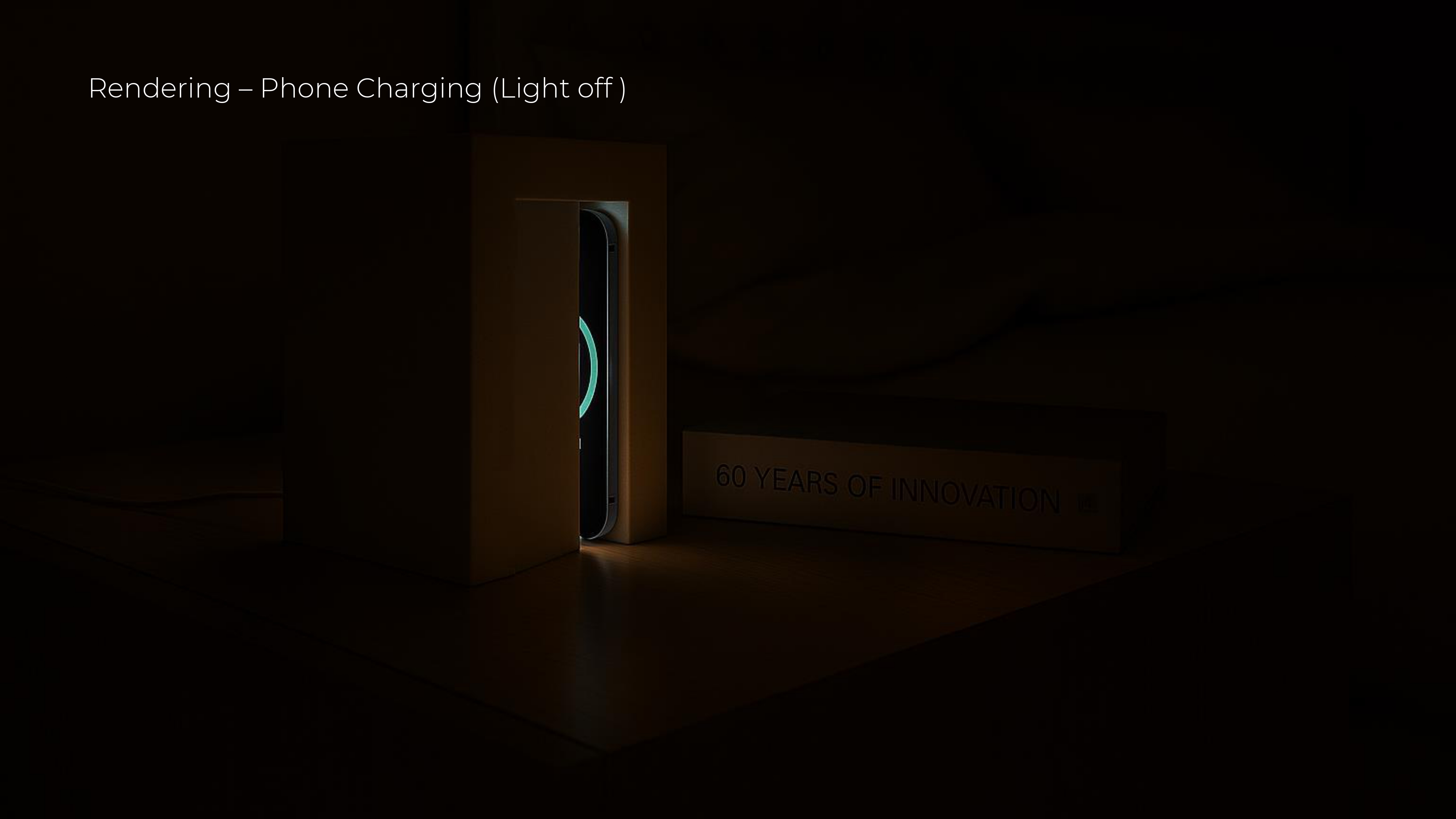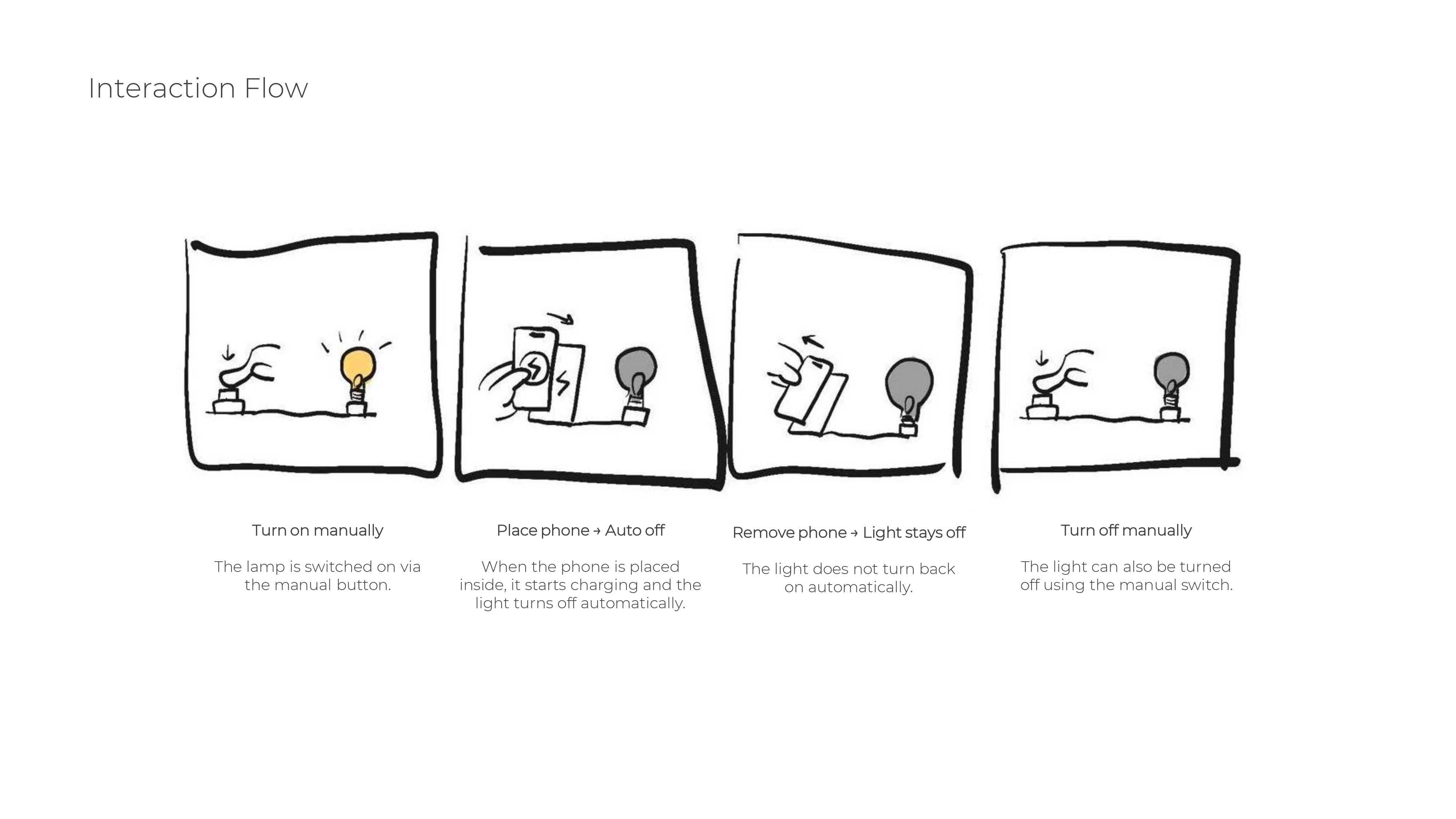 This interactive bedside lamp draws inspiration from a personal memory of childhood: when my mom would turn off the light after I handed her my phone at night. In this design, that small ritual is reinterpreted — sliding a phone into the lamp’s “door gap” initiates wireless charging and simultaneously turns off the light, signaling a moment of rest.