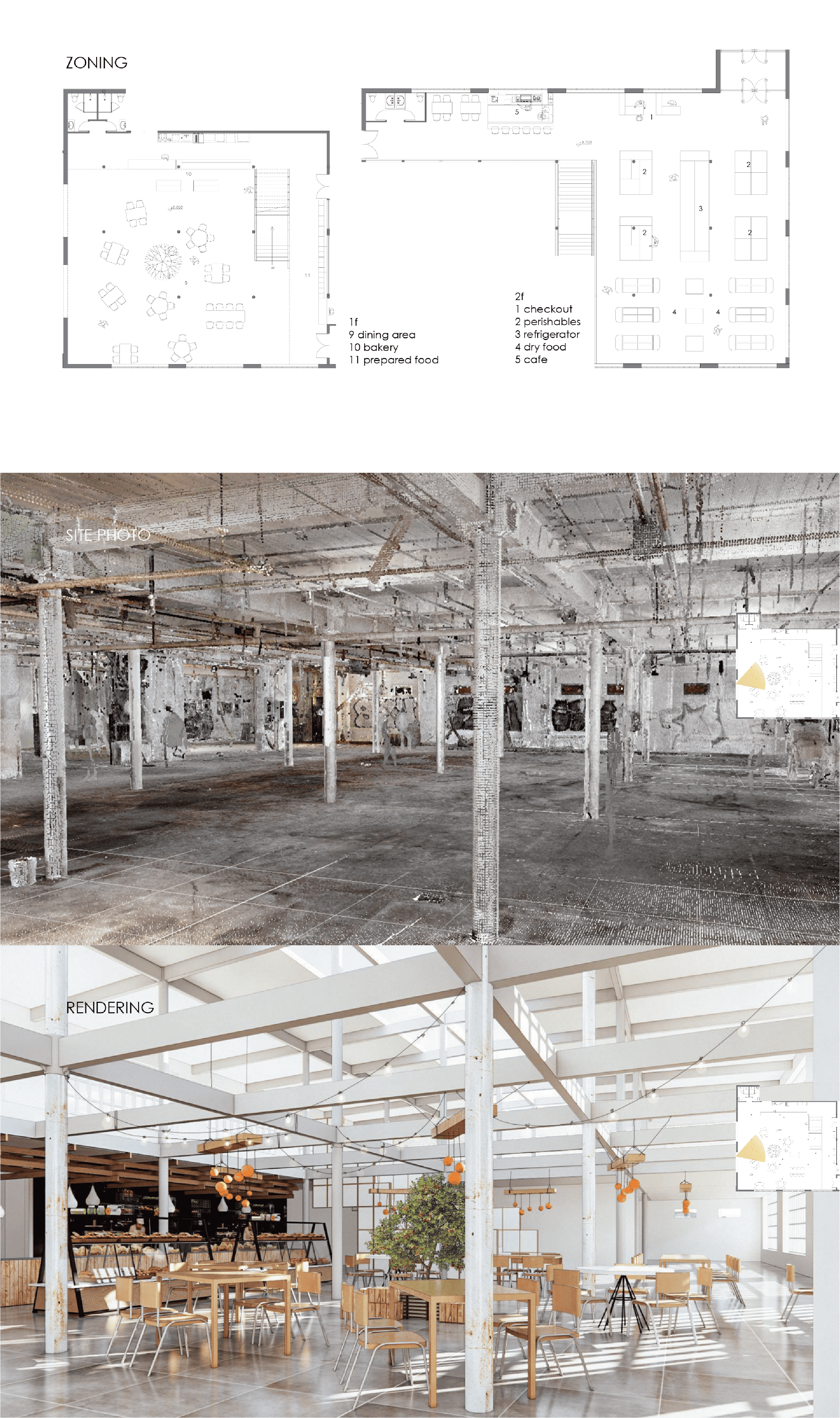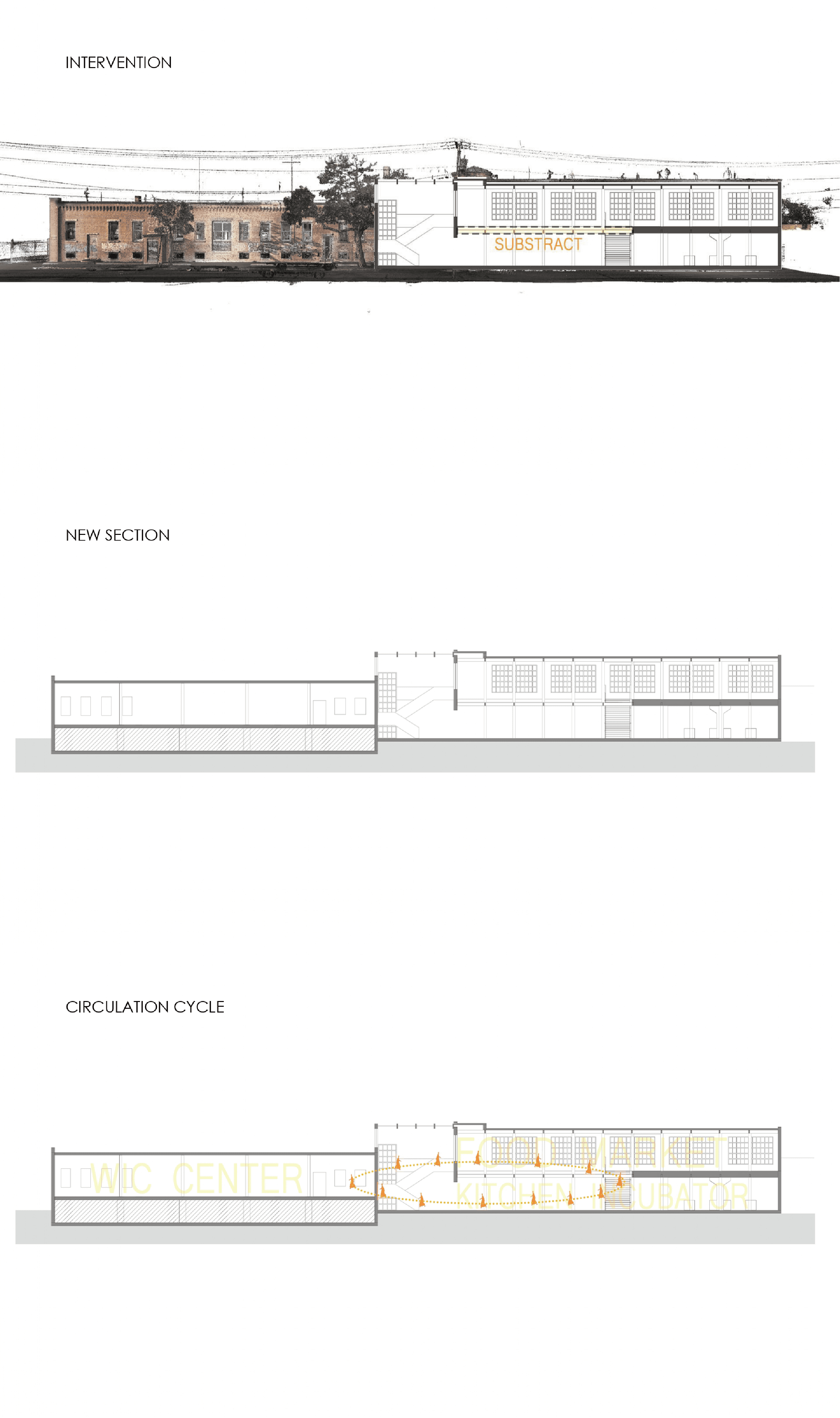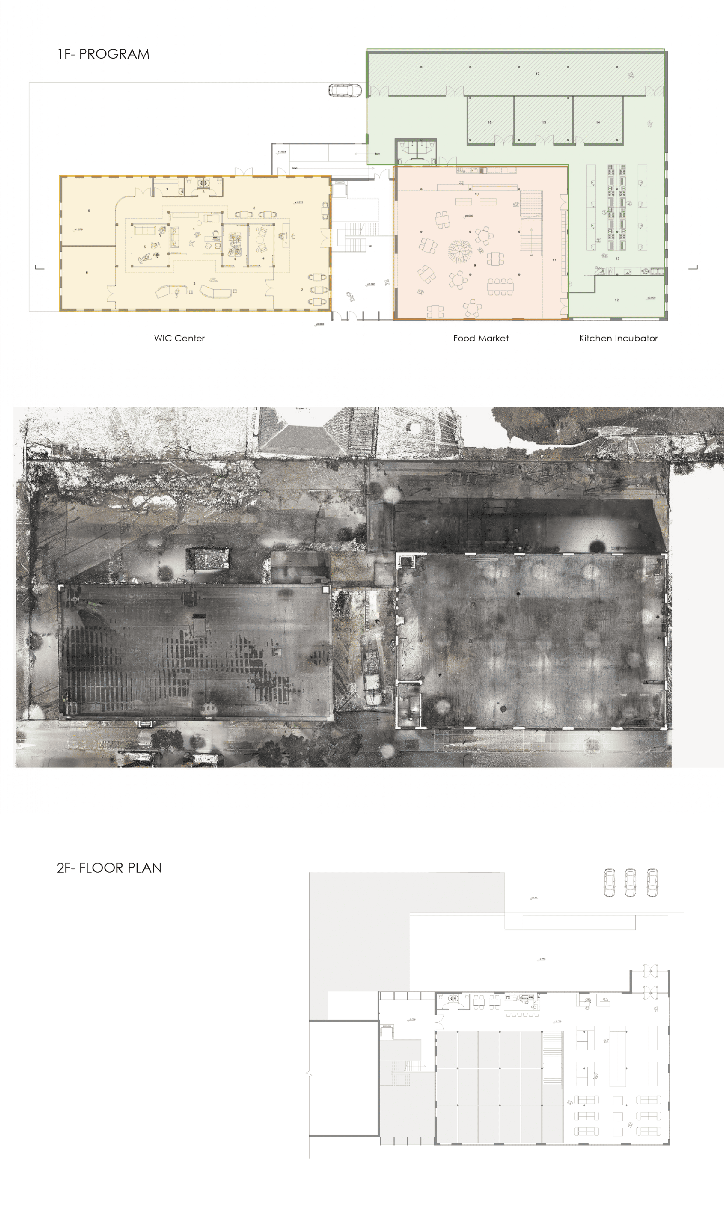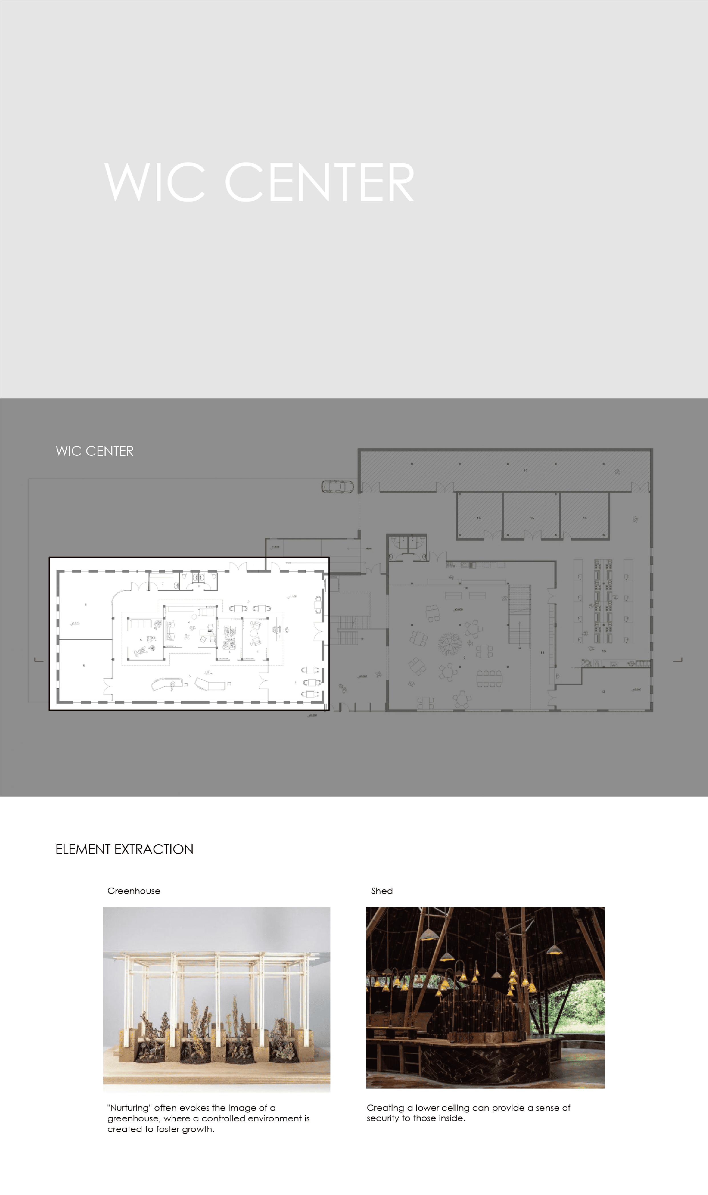 The design narrative revolves around a cycle of nurturing, harvesting, and sowing. The WIC Center fosters growth, the Food Market celebrates the harvest, and the Kitchen Incubator plants new opportunities for the community.