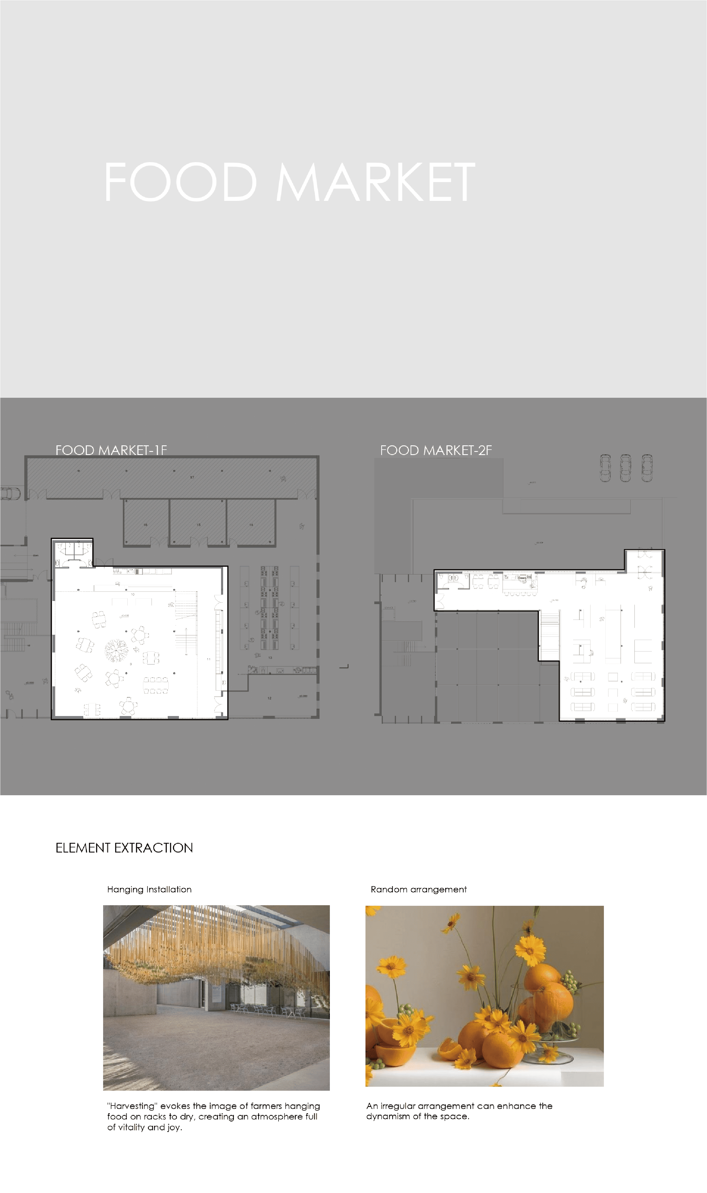 2. Food Market: A place to buy fresh and prepared foods, representing 'Harvesting.'