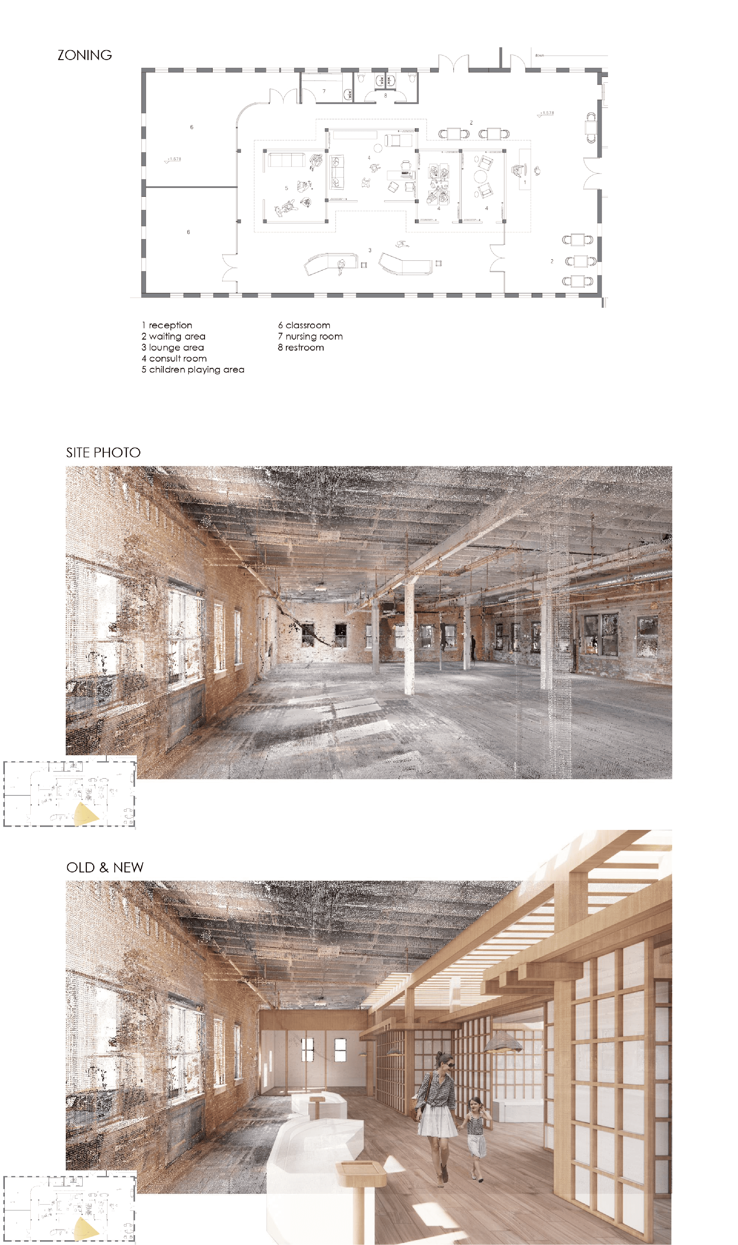 整个设计叙事围绕“培育、收获和播种”的循环展开:WIC中心促进成长,食品市场庆祝丰收,厨房孵化器为社区播下新的希望。